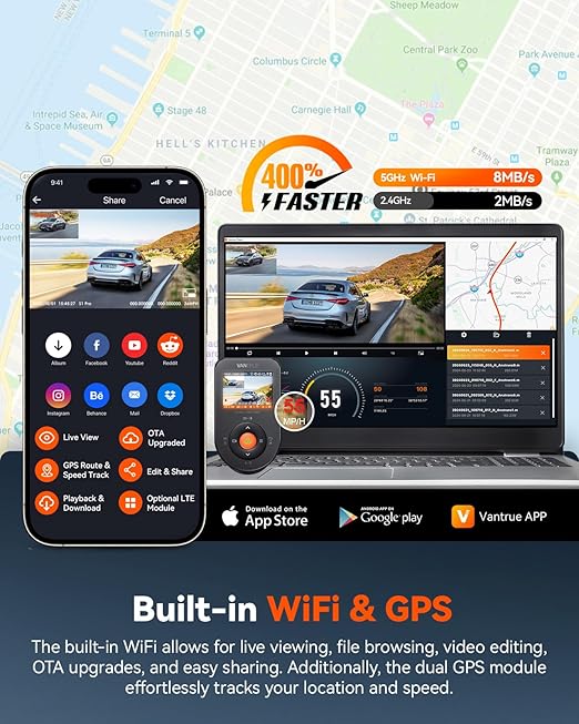 Vantrue S1 Pro 2.7K Dual Dash Cam Front and Rear, 5G WiFi 60FPS Hidden Dash Camera w/HDR Night Vision, STARVIS 2, Optional Remote Live View, GPS, Voice Control, 24/7 Parking Mode, Support 512GB Max